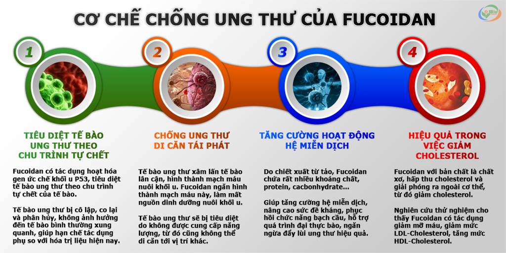Nhờ đó, Fucoidan giúp ngăn chặn sự phát triển và di căn của tế bào ác tính mà không làm tổn thương các tế bào lành.